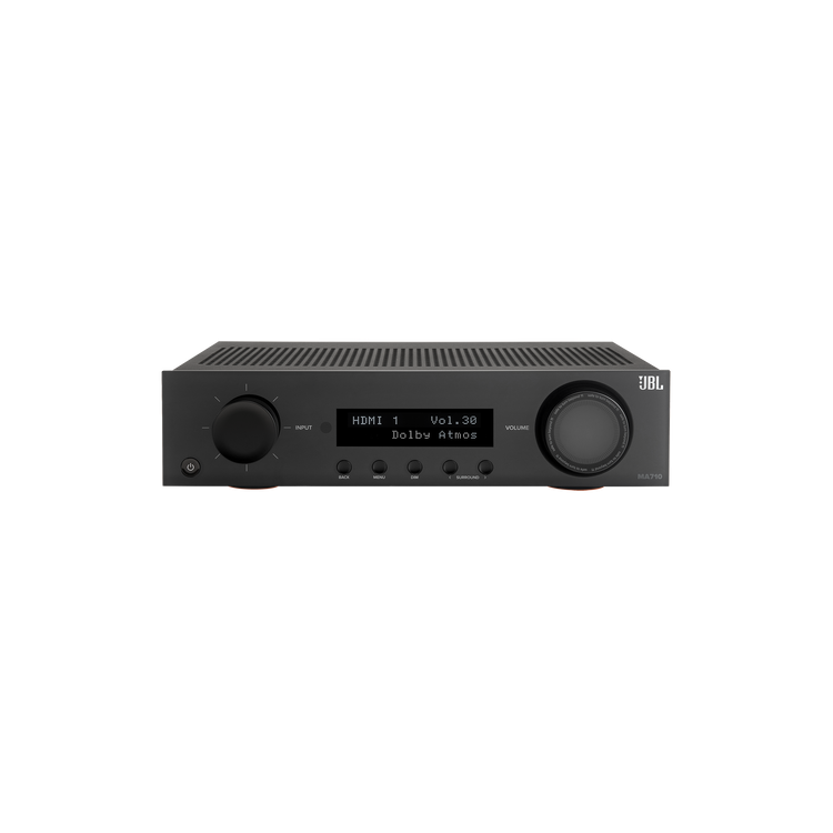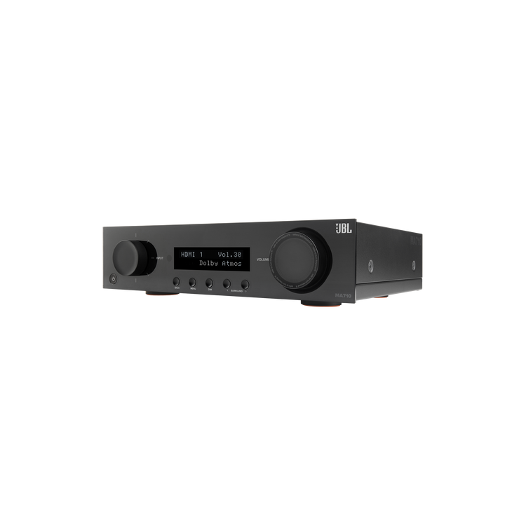 7.2-kanałowy wzmacniacz AV JBL MA710, który gwarantuje oszałamiający realizm dzięki wideo 8K, zapewniając najlepsze wrażenia z kina domowego.
