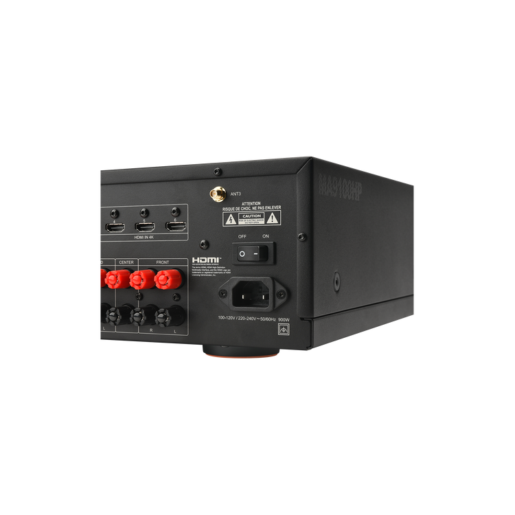 9.2-kanałowy wzmacniacz AV JBL MA9100HP o wysokiej wydajności, który gwarantuje oszałamiający realizm dzięki wideo 8K, zapewniając najlepsze wrażenia z kina domowego.
