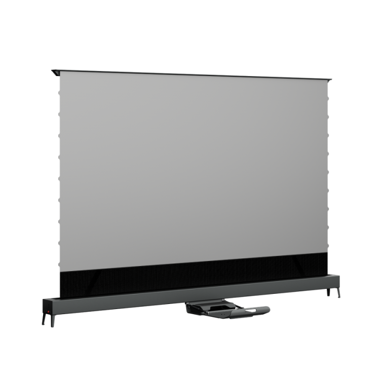 Zastosowany perforowany materiał przepuszcza dźwięk, co pozwala na lepsze zintegrowanie ekranu z systemem audio bez utraty jakości. Całość wyróżnia się nowoczesnym, minimalistycznym wyglądem z ukrytym okablowaniem, dzięki czemu ekran harmonijnie wpisuje się w wystrój wnętrza.