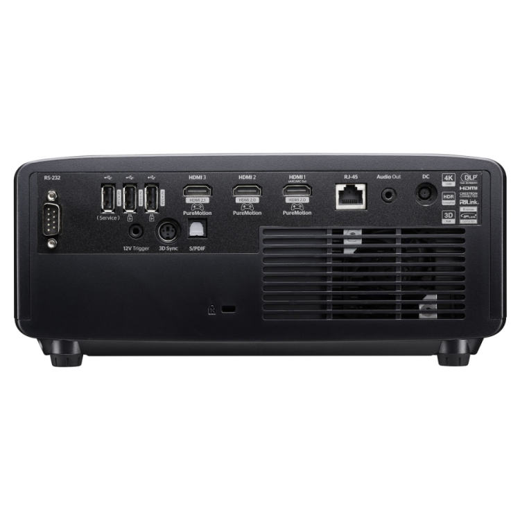 Dzięki dostępnym złączom 1 x USB-A power 1.5A, 1x 3.5mm minijack, 1x 3D Sync, 1x HDMI 2.0(eArc), 1x HDMI 2.1, 1x RJ45, 1x RS232, 1x SPDIF, 1x Trigger 12V, 2 x USB-A power 2A łatwo podłączysz ten projektor Optoma UHZ58LV do amplitunera, soundbara, komputera, konsoli, odtwarzacza BLU-ray lub innego systemu.