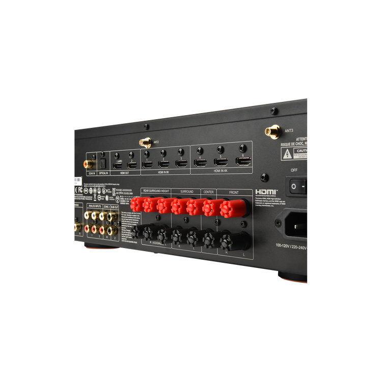 7.2-kanałowy wzmacniacz AV o wysokiej wydajności, który gwarantuje oszałamiający realizm dzięki najnowszemu wideo 8K, zapewniając najlepsze wrażenia z kina domowego