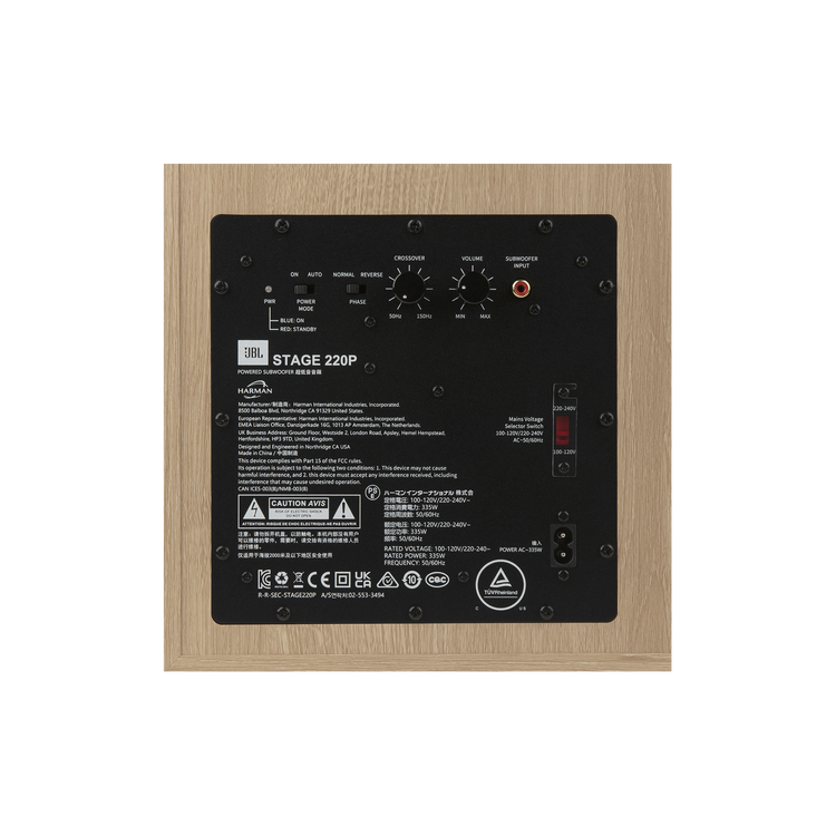 Stage 220P o mocy 500 W to najpotężniejszy subwoofer z serii Stage, który zapewnia emocjonujące brzmienie basów, którego pragną użytkownicy, zaprojektowany i skonstruowany w znanym na całym świecie zakładzie Acoustic Engineering Center of Excellence firmy JBL w Northridge w Kalifornii. Subwoofer jest wyposażony w głośnik niskotonowy 12” (300 mm) z membraną policelulozową z dwoma dostrojonymi tylnymi portami, który zapewnia legendarne, głębokie brzmienie basów JBL. Pełny zestaw elementów sterujących umożliwia łatwą integrację systemu.