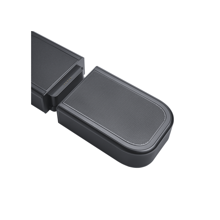 Podnieś jakość dźwięku przestrzennego 3D dzięki dynamicznej, wciągającej wysokości. Cztery głośniki skierowane w górę w soundbarze i bezprzewodowe głośniki tylne zapewniają dźwięk True Dolby Atmos®. Bez dodatkowych przewodów. Bez złączy zasilania. Wystarczy, że uniesiesz odłączane głośniki surround z soundbara – możesz to zrobić jedną ręką – i postawisz je za miejscem, w którym siedzisz, aby natychmiastowo przekształcić je w zestaw do emisji prawdziwie przestrzennych dźwięków. To naprawdę jest proste. Niezależnie od tego, czy oglądasz swój nowy ulubiony program, czy organizujesz noc filmową – trwałe akumulatory głośników zapewnią wciągający, kinowy dźwięk przestrzenny przez wiele godzin. Po zakończeniu po prostu umieść je z powrotem na soundbarze, aby naładowały się przez noc.